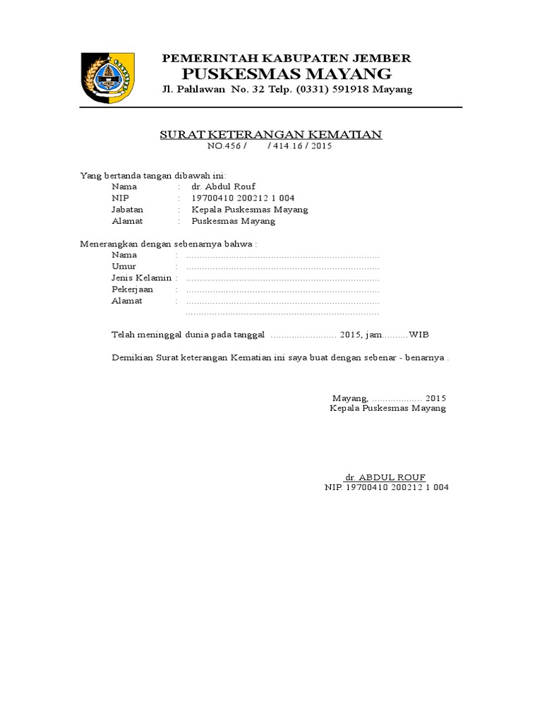 Contoh Format Surat Kematian Dari Kelurahan from 1.bp.blogspot.com Siapkan fotokopi surat kematian (wajib) Dengan mencari langsung contohnya di google mungkin kita bisa mendapatkan format surat keterangan kematian yang kita butuhkan jika kita menggunakan kode di atas. Format surat keterangan kematian pada umumnya berisi nama, tempat tanggal lahir, umur. Contoh surat bisnis, surat dinas, surat izin, surat kuasa, surat lamaran kerja, surat pemberitahuan, surat penawaran, surat pengunduran diri, surat peringatan, surat perjanjian, surat pernyataan, surat resmi, surat undangan. Dalam melakukan pengiriman barang, maka diwajibkan bagi pihak pengirim untuk membuat surat jalan agar barang. Surat keterangan ini sekilas hampir mirip dengan surat pernyataan , namun sejatinya ke dua surat tersebut adalah surat yang berbeda. Atas perhatian bapak/ibu saya ucapkan banyak terima kasih. Demikian surat keterangan penelitian ini dibuat untuk digunakan sebagaimana mestinya.